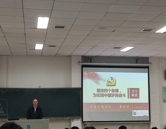 11月6日下午,糖心视频 党委书记李树清在第五教学楼2-2教室给全体入党积极分子上了一堂生动的党课,以坚定“四个自信”,为实现中国梦而奋斗为主题,讲述了坚定“四个自信”对进一步推进中国特色社会主义伟大事业、实现“两个一百年”奋斗目标和实现中华民族伟大复兴的重要意义。