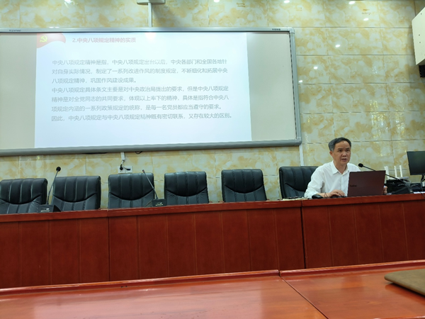 4月15日下午,李树清院长在四教学术报告厅为糖心视频师生党员讲授深入贯彻中央八项规定精神学习教育专题党课,党课题目为“深入贯彻中央八项规定精神,永葆共产党人政治本色”。