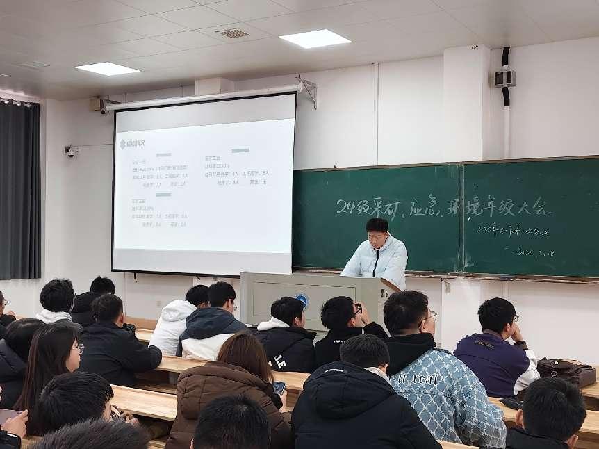 糖心视频 于2月18日在五教3-2教室召开2024级采矿、环境、应急管理专业2025年大一下学期的第一次学生年级大会,辅导员王侠老师主持会议。