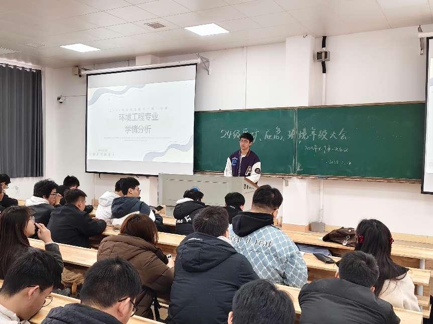 首先,由采矿专业年级长闫如意、环境专业年级长冯子齐、应急专业年级长龙煦三位同学对于上学期期末考试成绩进行了分析发言以及PPT数据讲解。辅导员王侠老师对于期末成绩情况做了补充和总结,鼓励同学们新学期对于专业课学习更加积极认真。最后,新学期开始各项工作也逐渐步入正轨,对卫生、查课、晚归等一系列问题进行叮嘱,并再次强调电动车购买和充电以及反诈骗问题,提醒大家注意人身安全和钱财安全。