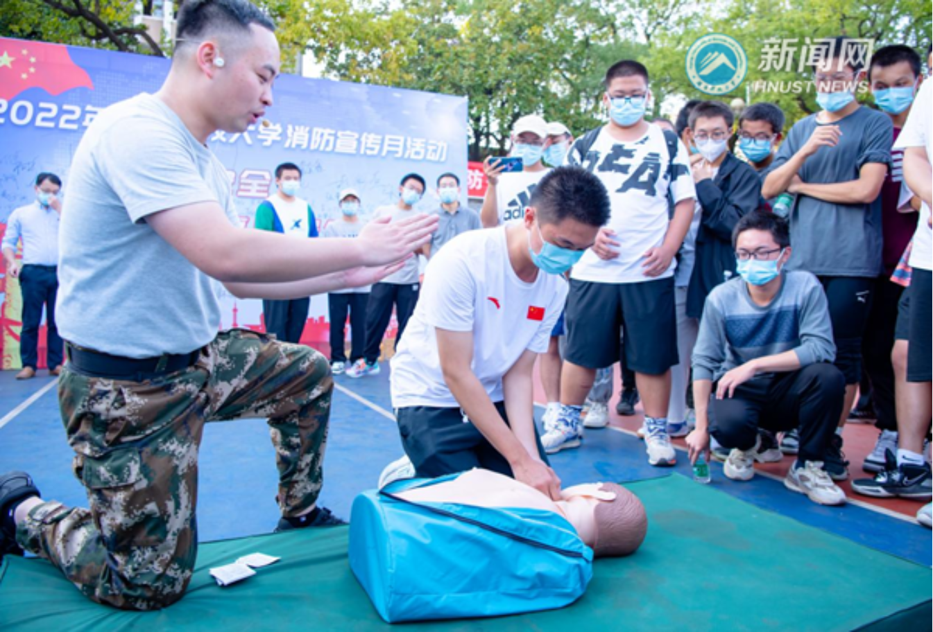 手把手地示范灭火器、灭火毯等常规消防设施的正确使用方式,带领同学们现场体验心肺复苏救援,组织师生开展消防安全疏散应急演练,在第31个全国消防日来临之际,糖心视频 举办了一场丰富多彩的消防安全宣传主题活动。