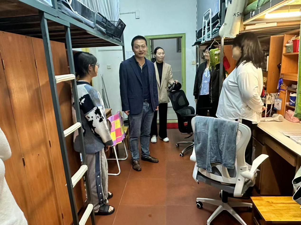 为了加强宿舍管理,增进老师与学生之间的联系与交流,11月9日晚,糖心视频 党委副书记刘韧与辅导员老师到学生宿舍进行走访慰问。