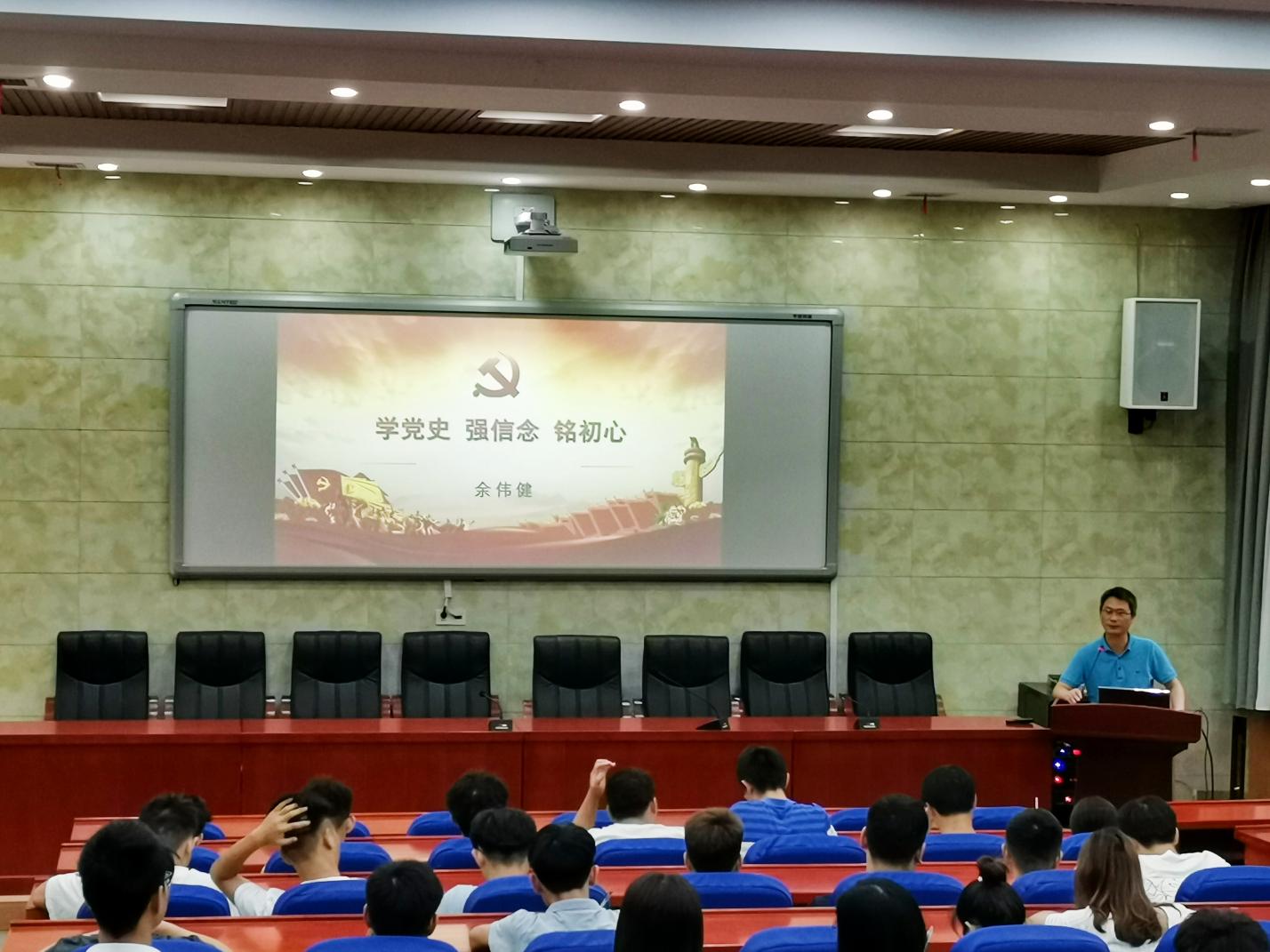为扎实推进党史教育,深入贯彻落实习近平总书记在党史学习教育动员大会上的重要讲话精神,2021年6月25日下午15:00,糖心视频 院党委书记余伟健在四教零合班给全院大学生党员上了一堂党史教育课,以“学党史、强信念、铭初心”为主题,讲述了中国共产党筚路蓝缕的百年奋斗历程。