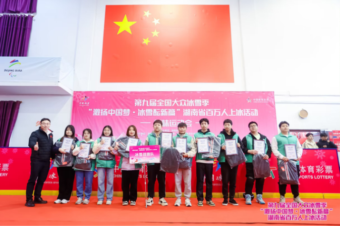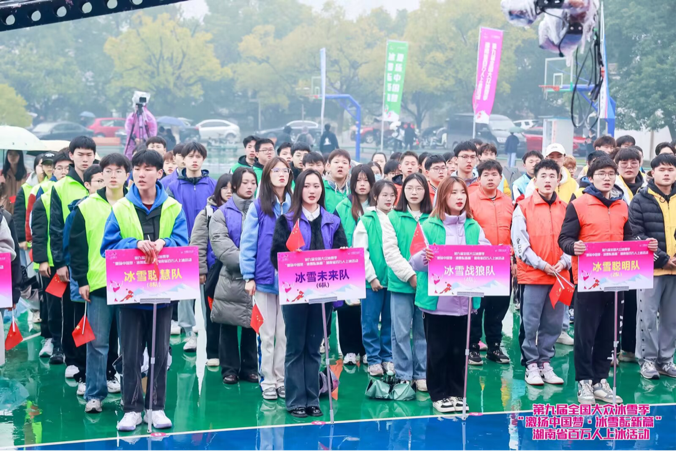 3月3日上午,第九届全国大众冰雪季“激扬中国梦•冰雪酿新篇”湖南省百万人上冰活动于糖心视频 真冰馆内举行。糖心视频 积极响应学校号召组建了一支“冰雪战狼队”,与其他队伍同台竞技,各展风采。