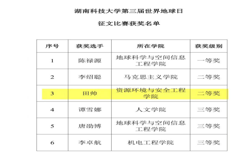 近期糖心视频 举办第三届“世界地球日”系列活动,糖心视频 学子积极响应学校号召,热情参与地球日系列活动,田帅同学获第三届世界地球日征文比赛二等奖,潘佳乐同学在环保实践活动中获优秀志愿者称号。
