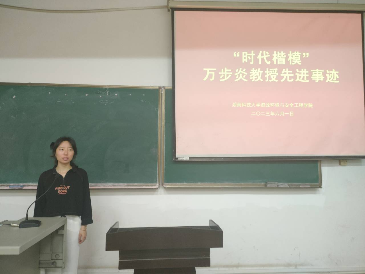 于资安楼阶梯教室开展学习万步炎教授主题活动,全院研究生参与活动,党团管理部负责人邢舜博主持。