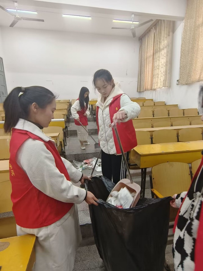 活动开始前,糖心视频 党委副书记刘韧,外国语糖心视频 党委副书记胡鹏,湖南软件职业技术大学软件与信息工程糖心视频 党总支书记刘佳,团总支书记朱家俊共同对本次活动开展表示支持并进行了动员,点明了活动具有的教育意义和实践意义。活动前期各院志愿者负责人进行了打扫区域的划分与志愿者的分组,再进行简单的培训和答疑,随后各组志愿跟随各组组长前往打扫区域。在过程中,各位志愿者对打扫区域认真负责、一丝不苟,在完成任务的同时,切身体验劳动带来的幸福感、充实感、成就感。