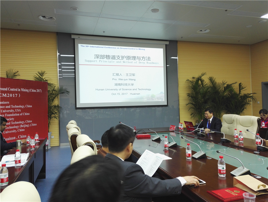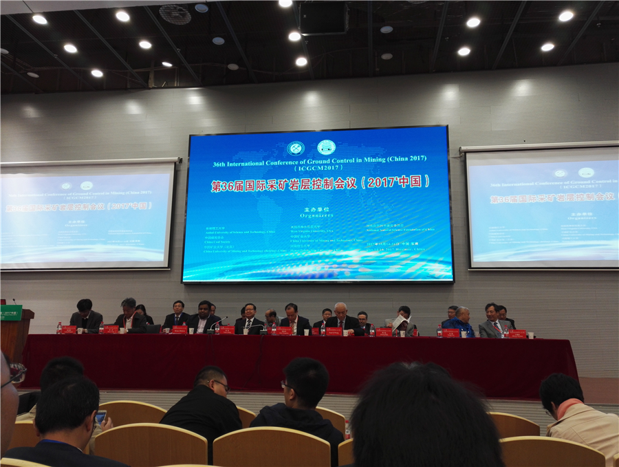 10月15-16日,由安徽理工大学、美国西弗尼吉亚大学、国家自然科学基金委、中国煤炭学会、中国矿业大学、中国矿业大学(北京)和河南理工大学共同主办的第36届国际采矿岩层控制会议(2017·中国)在安徽淮南召开。我校正校级督导冯涛教授、校党委委员王卫军教授分别作为大会学术委员会副主席、委员应邀出席了会议,副院长余伟健教授、科技处副处长朱永建教授、采矿系主任彭文庆老师、青年教师袁超博士及研究生廖泽等参加了大会开幕式并听取了主题报告。