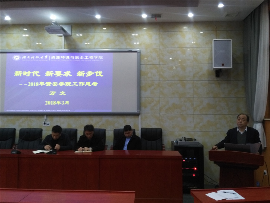 万文书记代表学院党委,向全院教职工传达学校2018年工作要点和会议精神,并提出学院工作的新目标和新要求。他以“新时代 新要求 新步伐”为主题,从我国目前所处的发展阶段和水平这个宏观层面进行分析,详细阐述了学校在新的经济条件下和社会发展中的办学新理念、改革新目标。在此基础上,万文书记就学校2018年工作要点和会议精神,提出今年学院党建、教学、科研、学科建设等各项工作的指导思路。他还通报了2017年院党委领导班子民主生活会召开情况。
