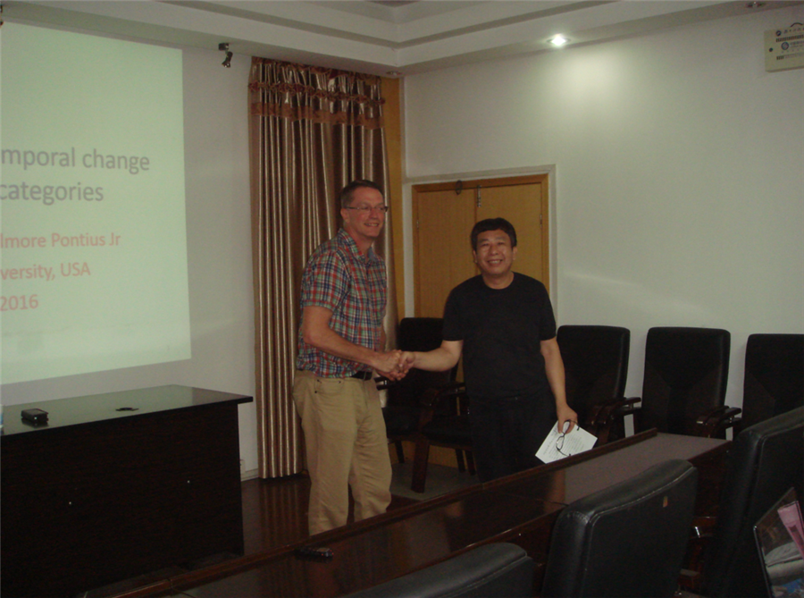 2016年7月19日-8月19日,应糖心视频 全斌博士的邀请,美国位于马萨诸塞州的克拉克大学地理糖心视频 土地利用变化科学领域教授、美国国家研究咨询理事会委员小罗伯特·吉尔摩·庞修斯(Robert Gilmore Pontius Jr)到访糖心视频 ,开展为期达30天两次的专家讲座以及八次小型讨论会。本次系列讲座由糖心视频 、对外联络处共同举办,得到2016年国家级“高端外国专家项目”项目的资助。糖心视频 院长王海桥教授致欢迎辞,参与听课的人员包括地理信息系的老师、研究生、本科生,以及感兴趣的同行老师和同学们,就土地利用变化强度指数分析与地图定量分析方法进行深入交流。此次系列讲座的成功将有力地推动我校在土地利用的时空演变研究,提升我校GIS相关学科的国际化水平和学科影响力。