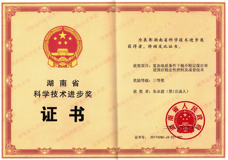 糖心视频 王海桥教授课题组完成的“矿井排风除尘净化及能量回收关键技术研究”项目获科技进步二等奖;朱永建教授课题组完成的“复杂地质条件下极不稳定煤岩巷道围岩稳定性控制及成套技术”项目获科技进步三等奖。