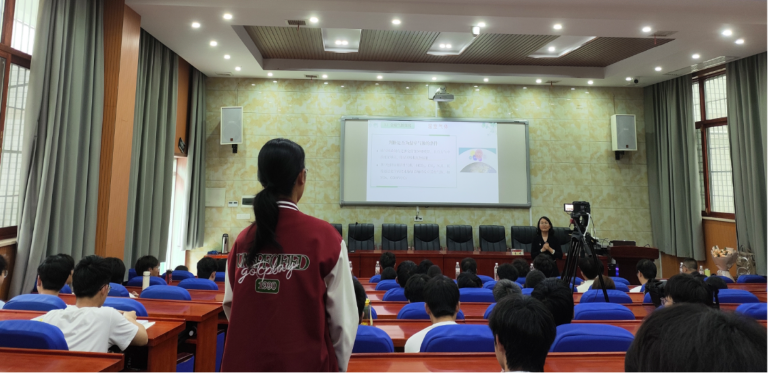最后,李娟博士以同学们身边的实际案例开展思政教育,并向全体学生发出 “行绿色使命,践低碳日常”的倡议,鼓励大家从点滴小事入手,将环保理念融入日常生活,为建设美丽中国贡献力量。