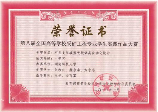 2018年7月10日~13日,由我校采矿系教师王卫军教授、余伟健教授和李青锋教授带队前往山东青岛参加。在本次会议上,余伟健副院长作为题为:“发展学科优势、提高学生创新能力的培养”的主题报告,反响热烈。在学生实践作品大赛环节,糖心视频学子总共有7项作品参赛,其中6项作品获奖。其中,刘敉共、魏永泰和方永志(指导教师王平、安百富)三位同学完成的“矿井支架模型无级调高自动化设计”作品荣获一等奖。甄彦雨、王栋、刘洋(指导教师分别为李青锋、余伟健、袁志刚)等同学的作品荣获二等奖,孟益民、张舜(指导教师分别为叶洲元、张自政)等同学的作品荣获三等奖。在青年教师讲课比赛环节,糖心视频采矿系教师王平荣获三等奖。