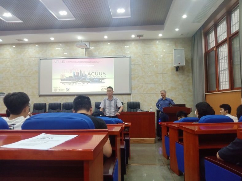 报告中周迎新院士首先从地下空间的所有权立法、四个海水淡化厂、地下军火库、储油库四个方面介绍了新加坡地下空间的开发;随后引入地下空间规划的未来与展望,分别从发展模式的变更、储能储碳、城市低质、3维规划,数字与智能城市、新的融资方式五个方面进行展望,并给出了地下科学城、地下仓库、地下物流系统、地下排水和蓄水系统四个可行性研究;然后阐述了地下空间规划的挑战,列举了地下空间发展的复杂性、寻找地下空间、法规和管理问题、成本效益问题、不同部门和利益相关者的协调、不同要求和应用的综合、管理相关利益者的期望、地质风险和拥堵的管理、人才培养九个挑战;最后提出了地下空间不能分开看待,需地上地下同时规划。周迎新院士作报告期间特别强调系统工程的重要性,提倡学生培养工程周期的系统观,重视前期规划。