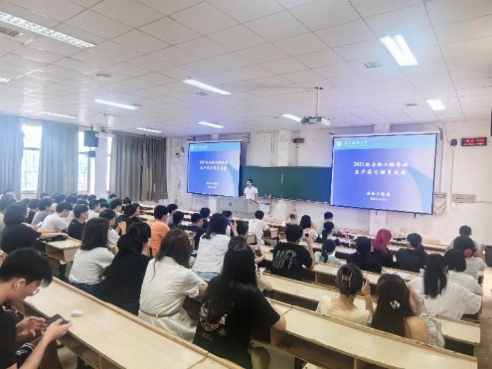 6月14日,2021级安全工程专业生产实习动员大会在五教1-2教室举行。安全工程系主任刘勇说明了生产实习与培养目标达成之间的关系,布置了生产实习工作安排,强调了生产实习安全及相关注意事项。2021级安全工程专业学生根据专业方向分成两个小组,分别开展生产实习。