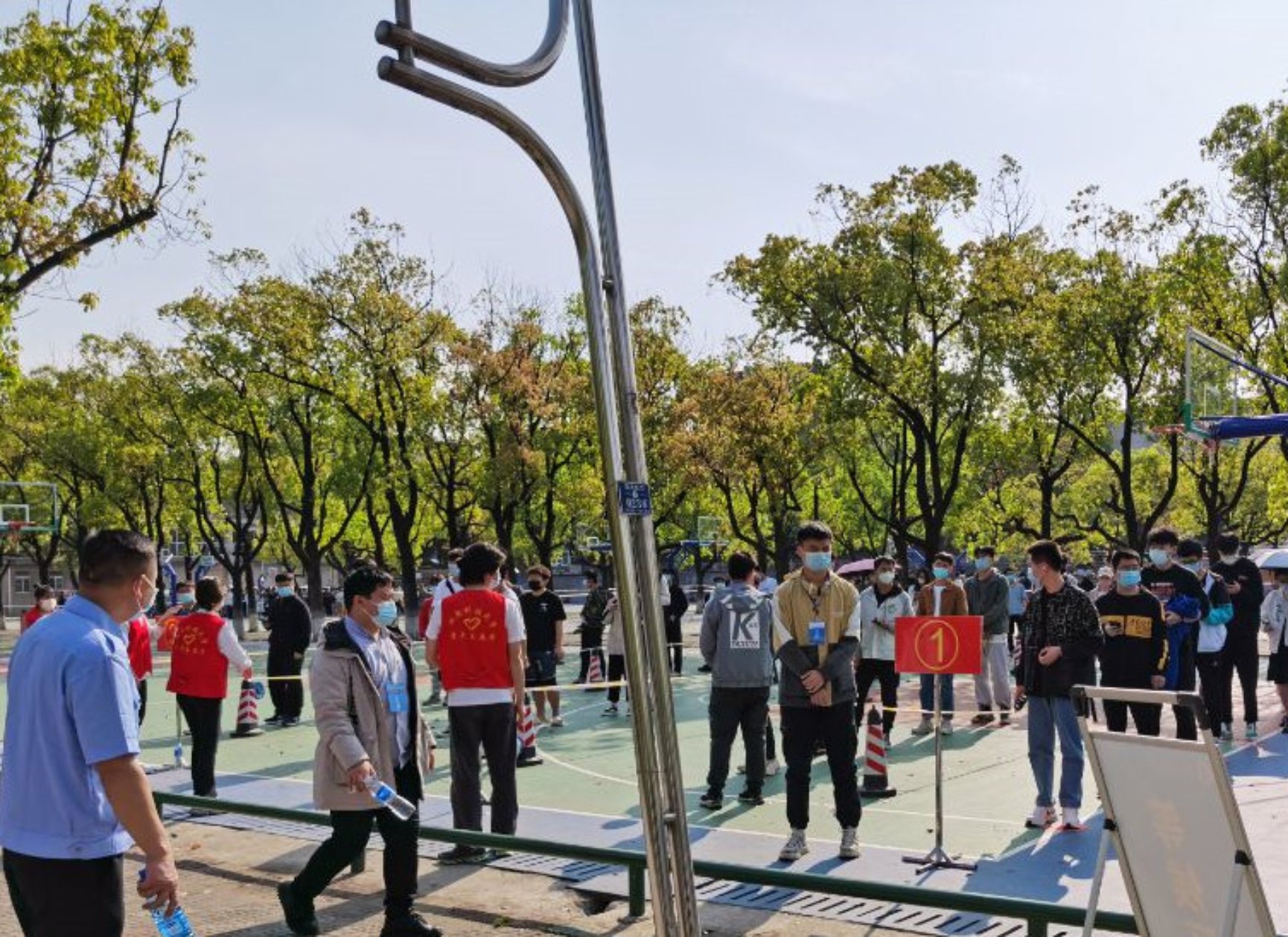 2020级安全工程专业学生谢文豪及24名同学是此次核酸检测学生志愿者。他们往返于组织集合点和核酸检测点之间,仔细清点好每组核酸检测人数,检查健康码,提醒检测师生保持一米间距,按批次有组织、有纪律的引导师生进行核酸检测。在学生志愿者们全面、细致的服务下,核酸检测工作进行得井然有序。