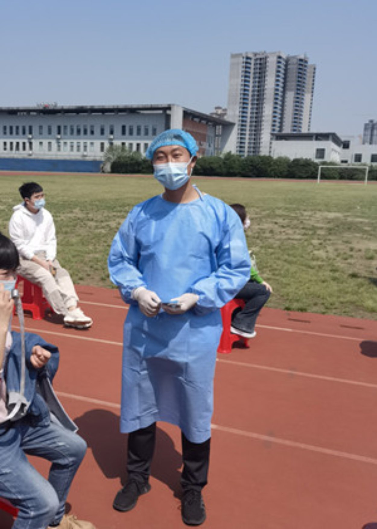 采矿工程系党支部书记、系主任王平,作为一名青年骨干教师,不但在教学工作中发挥言传身教的育人作用,更是将教师的模范作用体现在积极参加志愿服务活动中。安全工程系教师田兆君,作为一名优秀党员,积极参加志愿服务,充分体现了共产党员的先锋模范作用。在核酸检测过程中,王平和田兆君老师负责逐一查验师生的“两码”、递送检测人身份证录入信息,无数次地往返检录台和等候区。整整5个小时的核酸检测,两位老师几乎没有停下脚步的时候;王平老师笑称,运动步数应该是20000以上了。
