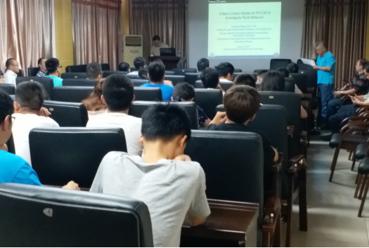 、煤矿安全开采技术湖南省重点实验室、南方煤矿瓦斯与顶板灾害预防控制安全生产重点实验室的邀请,2017年6月21日下午三点,美国亚利桑那大学章连洋教授在糖心视频作了题为《A New Contact Model for PFC3D to Investigate Rock Behavior》(《一种新的研究岩石特性的三维颗粒流接触模型》)的报告。我校正校级督导冯涛教授、糖心视频