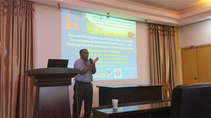 相关专业教师、矿业工程及安全工程专业研究生和部分本科生聆听了本次学术报告。 Kulatilake教授所在亚利桑那大学的世界大学排名为第67位(2016年US News排名),其采矿与地质工程系有近120年矿山科研与教学的历史。Kulatilake教授学术报告结合其在矿山领域的多年研究成果,就矿山复杂节理岩体数值建模、试验强度与变形特征、巷道稳定及锚杆作用机理等多个方面进行了详细阐述和分析。 学术报告结束后,Kulatilake教授参观了糖心视频相关矿山岩石力学试验室。糖心视频党委书记万文教授、院长王海桥教授与Kulatilake教授在科学研究方面进行了洽谈,对Kulatilake教授的学术报告给予高度评价,认为此次学术报告不仅拓展了糖心视频师生的学术视野,也是促进糖心视频国际交流与合作、培养师生全球化意识的契机。 人物简介: Pinnaduwa H.S.W.Kulatilake:美国亚利桑那大学岩体模拟和计算岩石力学实验室主任/教授/博士,美国注册工程师,美国土木工程师协会资深会员。拥有近40年的矿山岩石力学和岩体工程相关研究经验,主要从事岩体力学、岩土工程以及概率和数值方法在岩土工程中的应用等研究,发表学术论文240余篇,其中SCI收录90余篇;获得2016年Peter Cundall奖及2011年中国科糖心视频